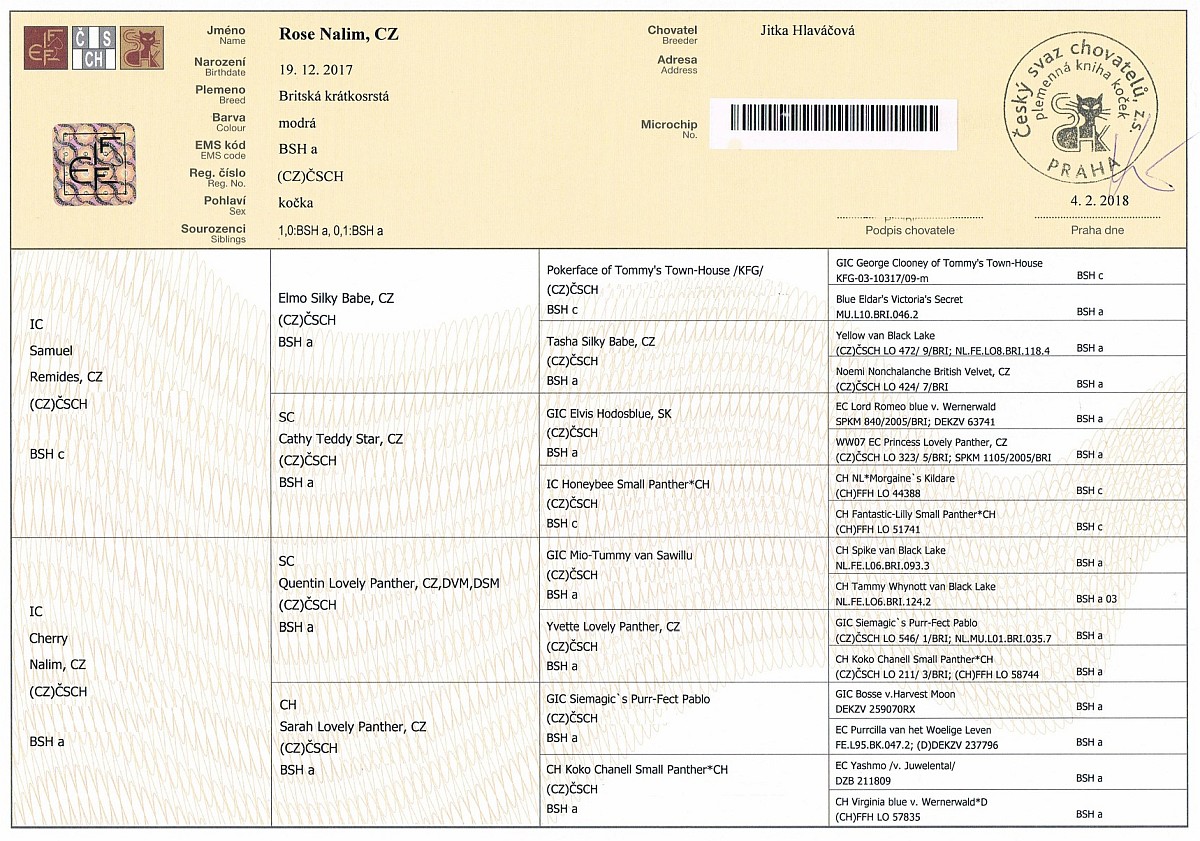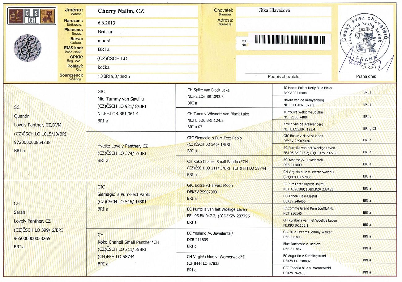 Matka: CH Koko Chanell Small Panther,CH BSH a